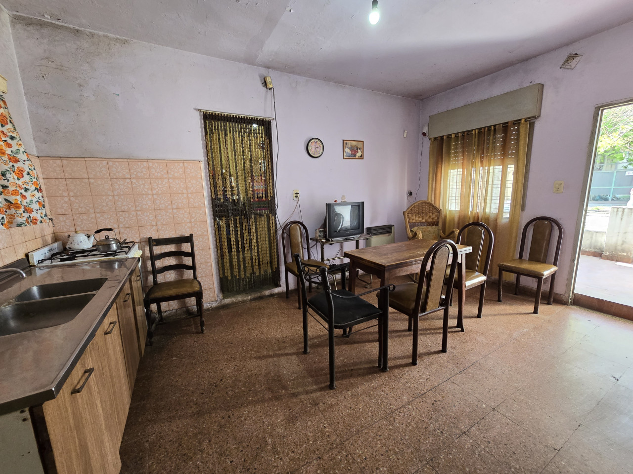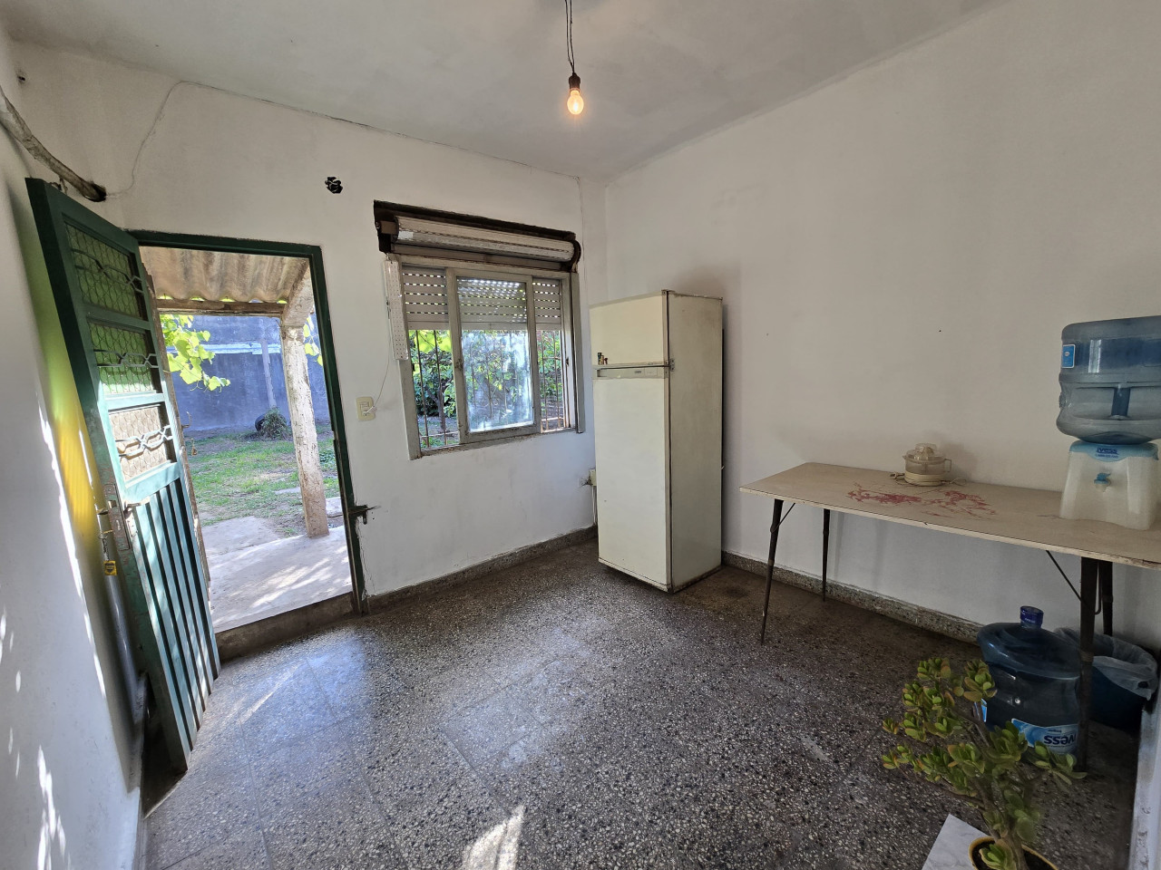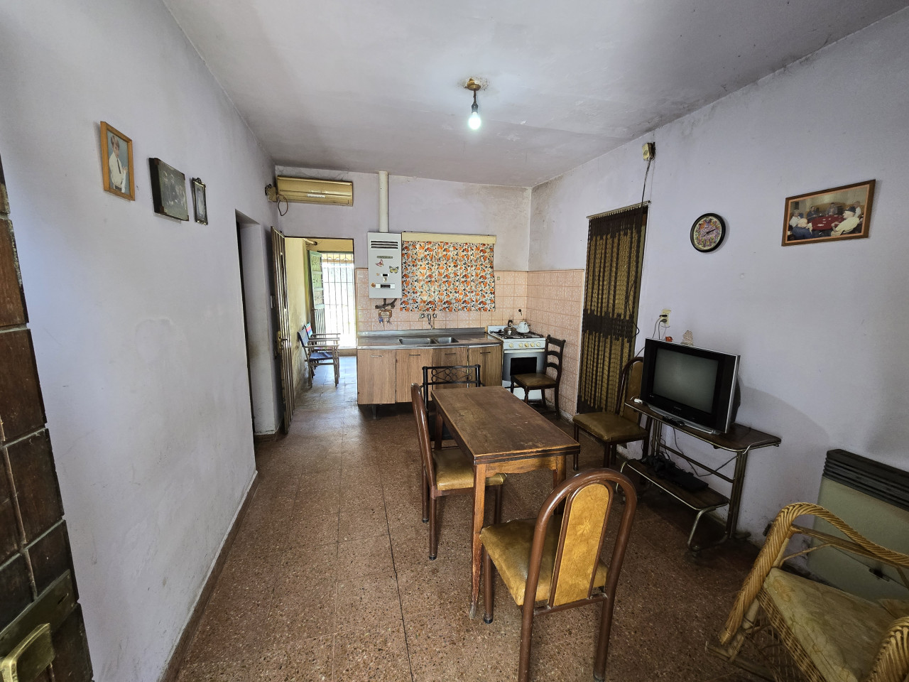 La misma cuenta con un ingreso al frente desde el porch hacia el comedor-cocina, lavadero y un pulmón distribuidor que nos conecta con las habitaciones y baño. Además la propiedad cuenta con cochera ( actualmente utilizada como local ) y un amplio patio en su fondo. Su techo es de losa y los servicios tanto de luz y gas son individuales.