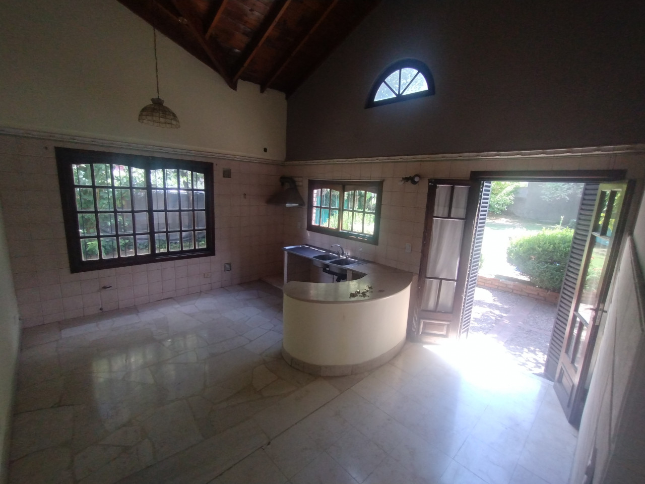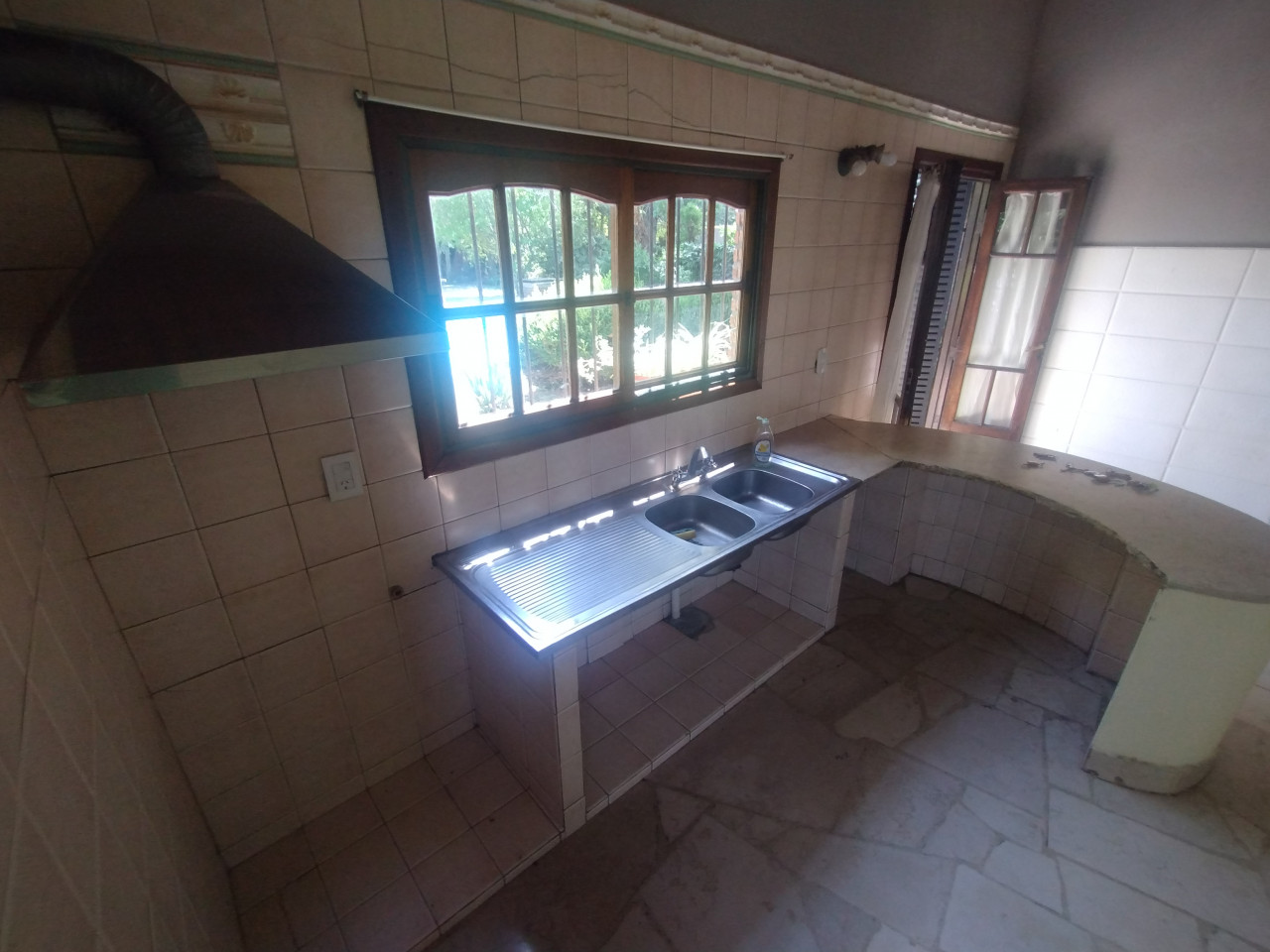 Cocina independiente de generosas dimensiones, con espacio para comedor diario y salida al jardín.