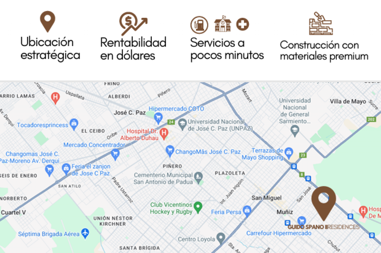 Guido Spano II Residences es un nuevo desarrollo residencial compuesto por 12 exclusivos departamentos tipo dúplex, ubicado en una de las zonas más tranquilas y consolidadas de la región. El proyecto está orientado a familias, parejas o personas que valoran la comodidad, la privacidad y el estilo, pero también representa una oportunidad sólida para inversores que buscan rentabilidad en dólares y resguardo de valor a mediano y largo plazo.